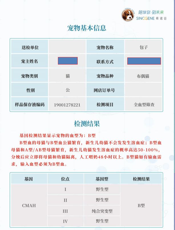 目前,很多宠物医院虽有不同种类的血型储备,但却没有快速检验血型的技术,这个时候如果能通过希诺谷基因检测技术预先了解自家主子的血型究竟是哪种,就可以为输血抢救争取宝贵的时间。