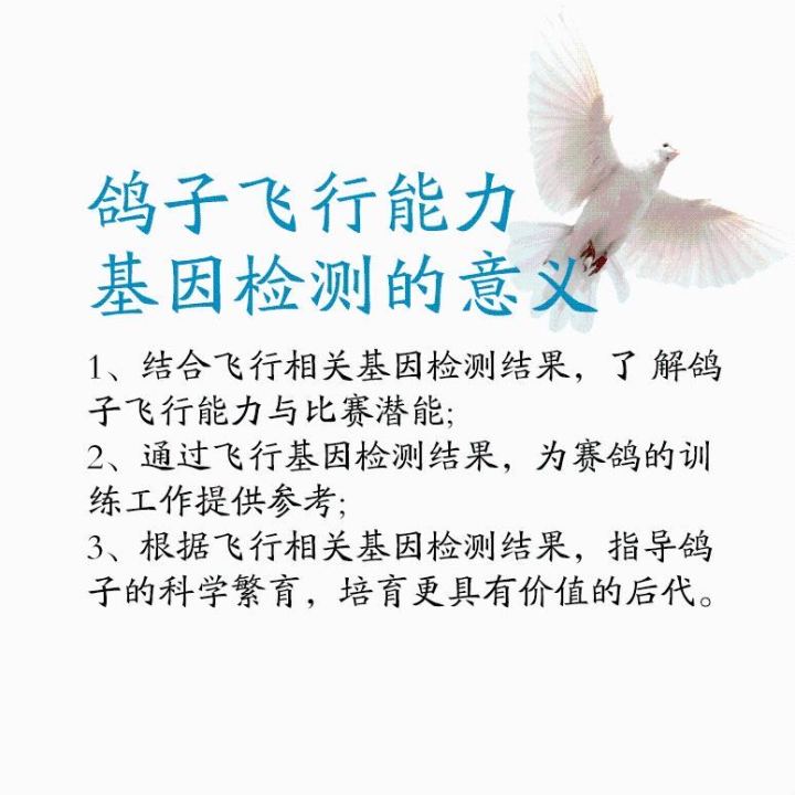 ☑结合飞行相关基因检测结果,为赛鸽的训练工作提供参考;